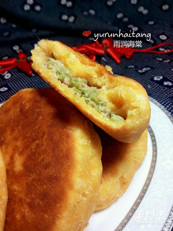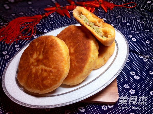 9.不粘锅中放入油,放入馅饼醒发一会,再煎至两面金黄色即可
