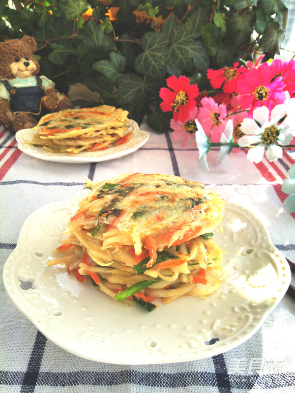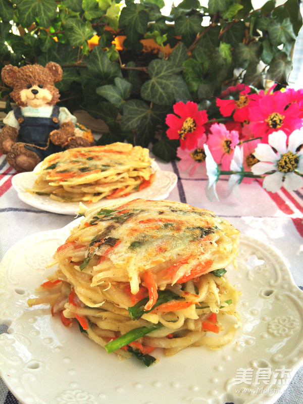 1. 刷油一是为了外皮口感脆,二是促进胡萝卜的营养被人体吸收,三是后刷油,控制油量,每日食用油不会过量。 2. 不用煎太久,不然土豆丝会太软烂,没有口感。