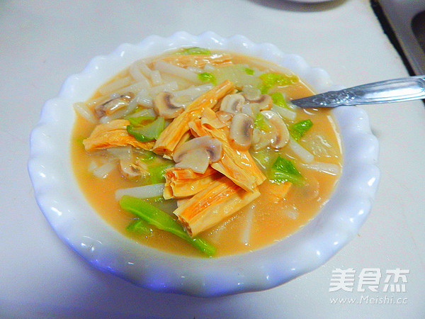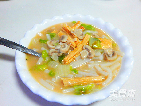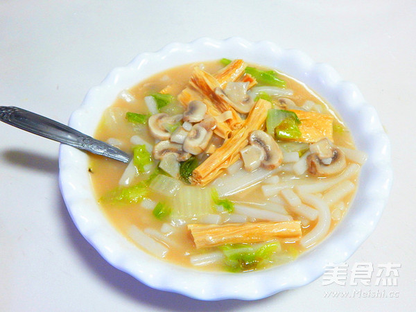 新年第三天吃的一道快捷早餐是为了吃饱点,一早出门玩不会早早饿肚子 主料 白菜100克 腐竹80克 年糕500克 口蘑30克 辅料 水2碗 浓汤宝1个 盐4克 生抽3克 白菜腐竹煮年糕的做法 1.白菜清洗干净切好 2.口蘑切片 3.锅里加油倒入白菜炒 4.大火炒软 5.然后加入2碗水 6.煮开后加入一个浓汤宝 7.大火炖8分钟 8.然后加入年糕 9.炒匀后加入口蘑 10.在大火煮五分钟 11.然后加入盐及腐竹 12.加一点生抽 13.煮至年糕熟即可关火 14.煮好装盘 烹饪技巧 年糕加入的时候一定要多搅拌不然容易沾锅