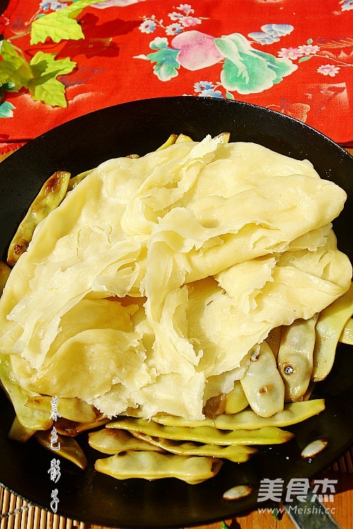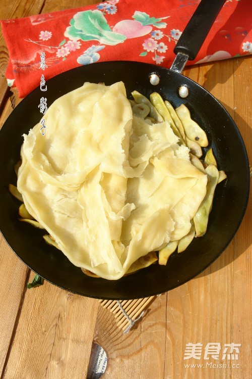 东北的豆角种类很多。最爱的是黄色的豆角“翻白眼”。豆角外皮很嫩甜,豆子很糯的。可以清炖或者搭配土豆、肉、排骨之类一起炖特别的好吃。豆角闷饼在东北菜里也是很受欢迎的菜。大多都是把熟的饼切碎做。我喜欢把生饼和豆角一锅出,感觉这样更好吃。油汪汪的豆角散发出的清香味道和饼的面香融在一起。油饼是靠着菜的汽水蒸熟的,所以饼特别的柔软。