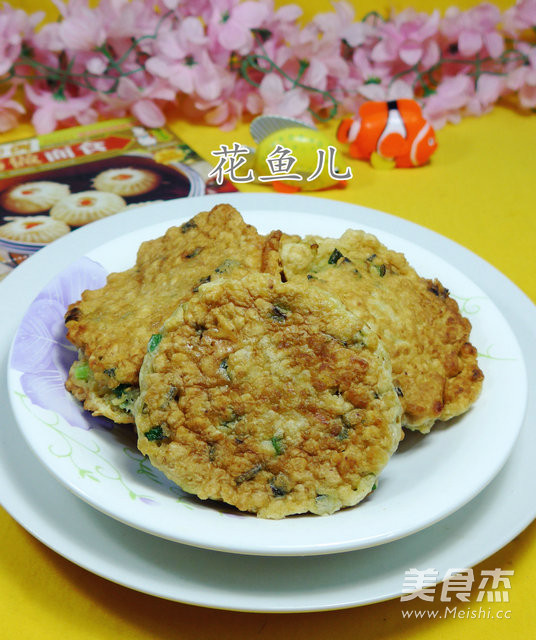 9.然后,取平底锅置火加入3汤勺油,用勺子舀入拌好的面糊,煎至两面金黄,即成。