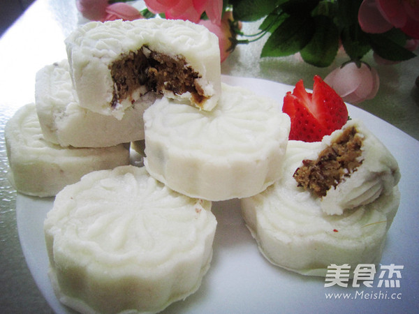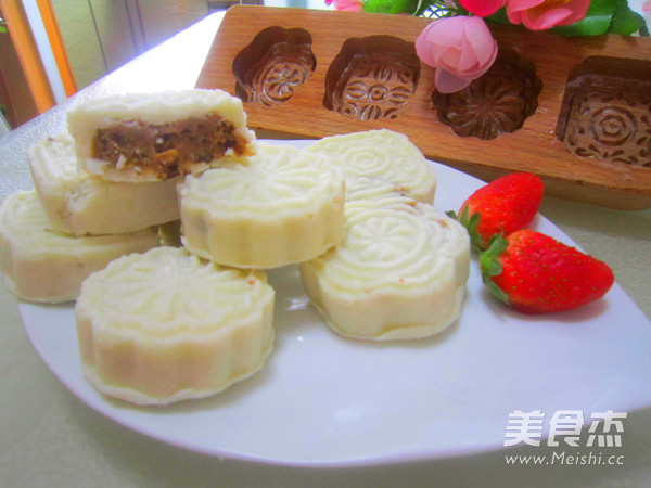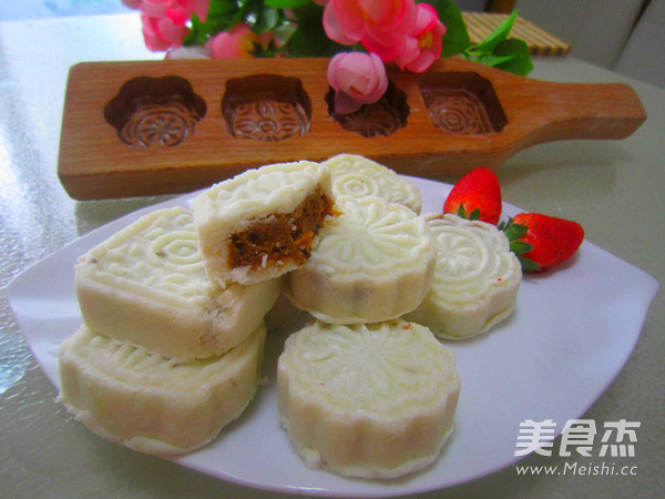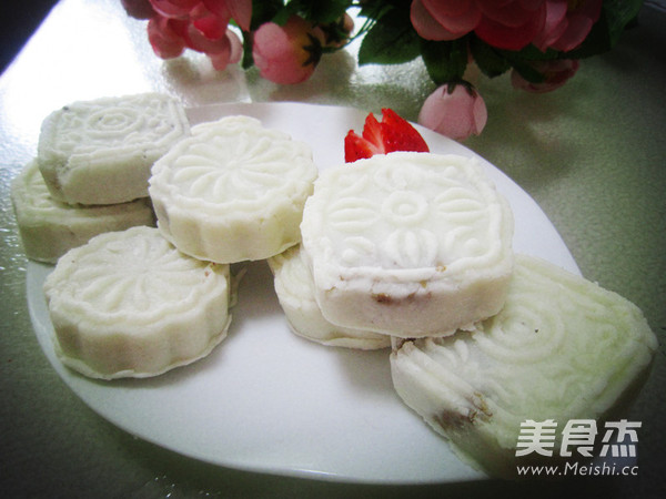 山药去皮洗净上笼蒸制,出来后用刀背压成泥装,再装入食品袋用擀长擀压成更细腻的山药泥,月饼模子里要撒入少许熟糯米粉,压出的山药糕很好倒出来。
