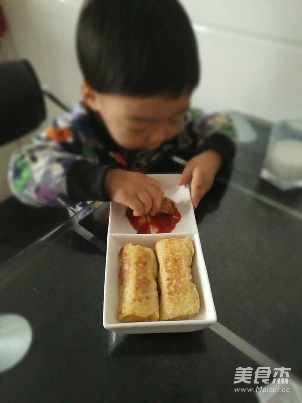 松软的土司卷,在配上番茄酱,特别的美味,适合宝宝吃哦。 主料 吐司3片 辅料 香蕉1根 鸡蛋1个 玉米油适量 土司香蕉卷的做法 1.准备食材 2.切掉面包边 3.擀一下 4.香蕉切成跟面包一样长的段,在对半切开,放在面包片上 5.用面包片把香蕉卷起来 6.鸡蛋液打散,放入面包卷均匀的沾上蛋液 7.平底锅热油,煎至两面焦黄 烹饪技巧 面包片一定要擀一下。