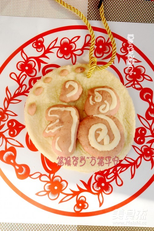福猴拜年咯!祝福亲们;阖家幸福安康、万事如意!猴年来了!猴子是人们喜欢的高级的动物。聪明又顽皮,深得小朋友们的喜爱。公园里猴子面前是人最多的地方。猴年到来之前已经炒热了!一直都想做一款美猴王来拜年。因为用什么颜色来做美猴王比较纠结。比较排斥用色素吧。感觉那些鲜艳的色素给宝贝们入口,还是谨慎为好。天然的给宝宝们食用最放心。所以本菜谱采用樱桃酱里的汁,搭配白色面粉做美猴王,烤的时候很担心变色,用锡纸遮挡下效果很不错。