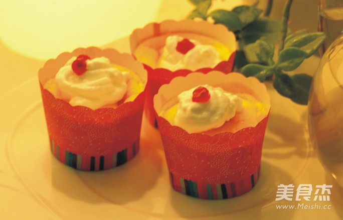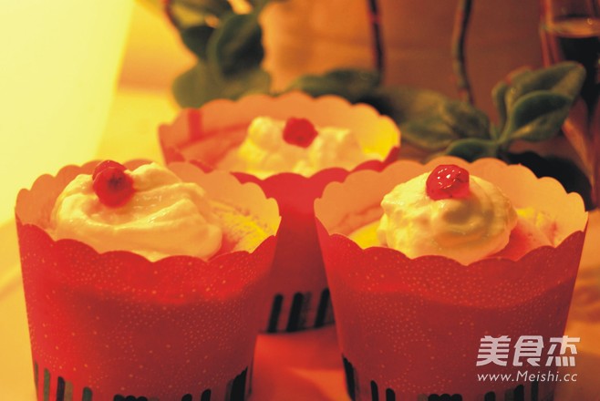 10.烤好后的小纸杯蛋糕挤上适量的酸奶