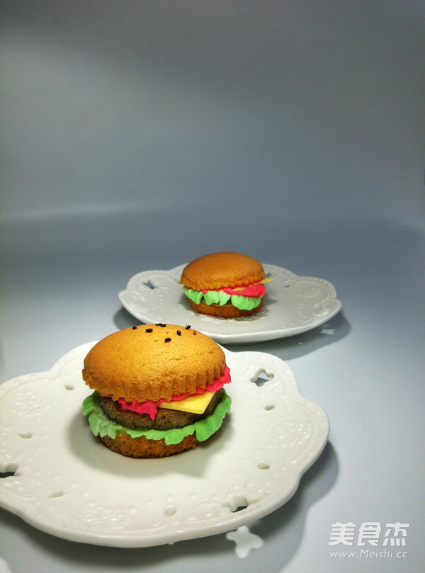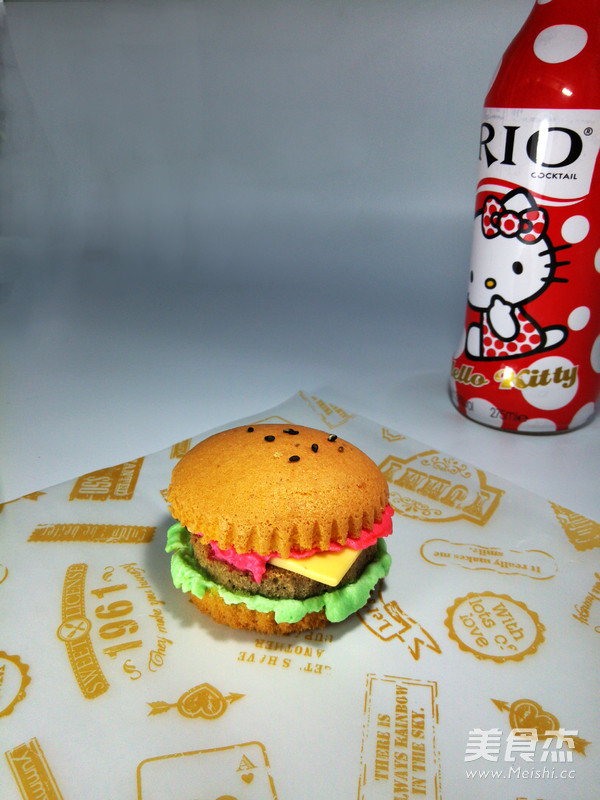 把杯蛋糕做成萌萌哒汉堡的样子,奶油当成菜叶和番茄酱,可可味杯蛋糕片当成肉片,还有一片儿乳酪,用是不是吃的时候的心情也不同了呢。。。