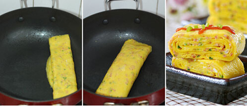 厚烧卷蛋的材料:鸡蛋5个,火腿30克,食盐,植物油,细香葱5根 厚烧卷蛋的做法: 1.鸡蛋5个打散,火腿和香葱要切的很细碎 怎么做好吃 2.锅里只用刷子刷一薄层油。摊两层饼刷一次油即可。或者,不喜欢油多,且不粘锅效果好的话,不刷油亦可 3.此分量约分5次摊完。每次倒入蛋液越少,蛋饼就越薄,最后做出的厚蛋烧层数就越多。 4.全程用中小火即可。火不能太大。要在蛋液半凝固状态卷起来