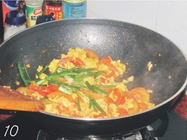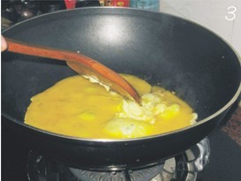 5、锅内再倒少许油,放入几粒蒜米后把番茄倒入锅内。