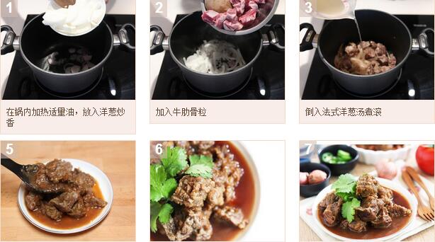 2.倒入法式洋葱汤煮滚,之后转为小火,炖煮至骨肉分离再撇去浮在汤面上的多余油分就可以装盘上桌了。