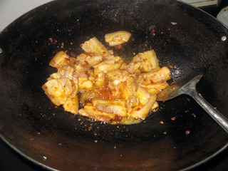 1 原料:五花肉,也可以用猪后臀肉俗称二刀肉。 2 原料:青红椒,青蒜,豆豉,郫县豆瓣酱。 3 冷水下肉,大火烧开,煮至肉刚熟即可,待肉凉后切成薄片。 4 冷水下肉,大火烧开,煮至肉刚熟即可(用筷子可以穿透不渗血水),待肉凉后切成薄片。 5 起油锅,下肉片煸炒。 6 待肉片出油有点卷的时候,下郫县豆瓣酱炒匀 7 再加入切碎的豆豉炒香。 8 加入青红椒,炒至断青 9 最后,加入青蒜炒出香味。 10 最后,再加入糖,鸡精调味就可以出锅了。 小窍门: 1、肉要切薄点才能卷起来。 2、煮肉的时候一定要冷水下锅,锅里可以放些姜片、大葱、料酒去腥。 3、加入配料一定要按照顺序。