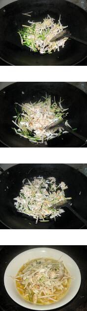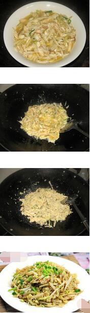 桂花蟹肉的材料:螃蟹肉150g,鸡蛋3只, 冬笋100g, 肥猪肉, 桂花蟹肉的做法: 1.螃蟹煮熟后,取出蟹肉待用。 2.将鲜笋、姜葱、肥肉切丝待用,鸡蛋加盐搅拌均匀。 3.坐锅倒油,将鲜笋、肥肉、姜葱下锅煸香,加入准备好的蟹肉,锅里的所以材料炒熟盛出。 4.将炒好盛出的材料加入到鸡蛋里搅拌均匀。 5.坐锅倒油,将鸡蛋混合物下锅快速煸炒,鸡蛋炒成桂花状就可以出锅了。