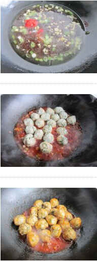 醋溜萝卜丸子的材料:萝卜丸子400克,油,盐,香葱5克,姜2克,香菜5克,香醋10克,番茄酱10克,水淀粉,味极鲜2克,鸡精2克, 醋溜萝卜丸子的做法: 1. 把香葱洗净切末,姜去皮切末 ,香菜洗净, 2.热锅凉油加葱姜炒出香味,加水,香醋,加味极鲜,盐,番茄酱,大火烧开,下萝卜丸子,大火烧开转小火,煮到丸子入味,加鸡精水淀粉勾薄芡翻炒均匀出锅,把香菜围在盘子一圈,倒上丸子即可