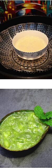 牛油果燕窝的材料:燕窝35克,牛油果1个,冰糖适量,薄荷叶少许几片牛油果燕窝的做法:1.牛油果对半切开果肉挖尽,壳子待作为容器。2.牛油果肉用勺子压碎,不要用搅拌机,会打的太碎,影响口感。怎么做好吃 3.发好的燕窝加少量热水,入热水锅用文火隔水蒸20分钟,再加冰糖再蒸10分钟。4.把蒸好的燕窝跟压成碎块的牛油果泥均匀搅拌在一起,重新填入牛油果壳中,点缀上薄荷叶即可享用了。