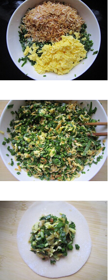 韭菜鸡蛋饺子的材料:韭菜,鸡蛋,虾米,饺子皮,油,香油,五香粉,盐