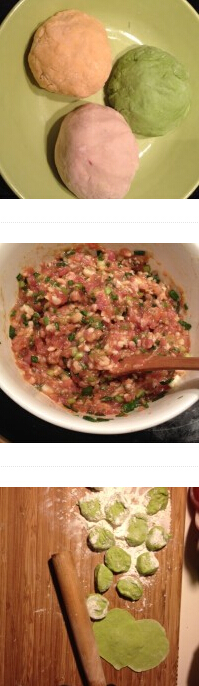 三色饺子的材料:面粉,鸡蛋,菠菜,草莓,西红柿,胡萝卜,肉馅,白菜,小葱,姜粉,橄榄油,花椒油,五香粉,酱油,盐,鸡精 美食网
