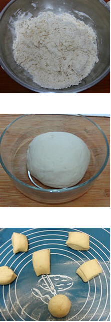 1 酵母加入适量温水里搅拌均匀,把酵母水及油加入面粉中,分次加入220g水,边加边用筷子搅拌,直至没有干粉,呈絮状,揉成光滑面团,盖上保鲜膜 ,室温发酵40分钟左右。