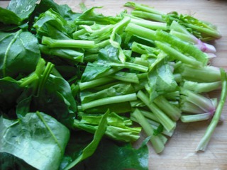 3 锅中水烧开放入菠菜段少许盐、使菠菜的颜色更绿,焯3-5分钟即可熟;