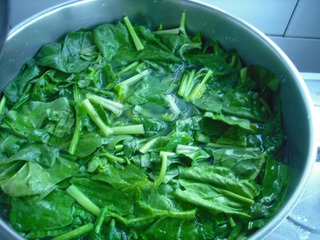 4 取出锅中的菠菜,用凉水冲凉备用;