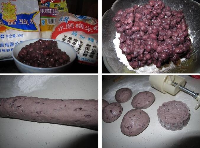 1.先做红豆泥:将红豆浸泡一天或一天一夜,倒入高压锅,加适量水(不要太多,否则成太稀的红豆泥)和冰糖,大火煮至冒气,转中火煮12分钟,关火,待到温热时再揭锅,此时红豆泥应成黏稠状,红豆形状饱满,口感熟烂;