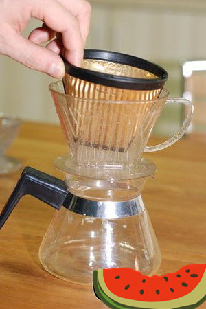 1. 折好滤纸,放入滤杯,滤纸贴合滤杯。滤杯坐到分享壶上。
