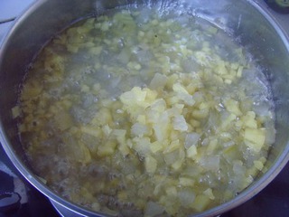 3 加入适量水与果肉持平即可,开大火煮沸。