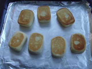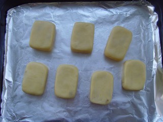 15 摆入烤盘中,用手轻轻按压,整理成长方块。