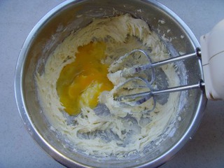 9 将鸡蛋打匀,分次加入粉盆中,打匀。