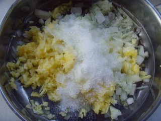 低筋面粉(80g)鸡蛋(30g)奶粉(25g)糖粉(50g)黄油(30g)猪油(30g)调料菠萝(500g)冬瓜(500g)白糖(50g)冰糖(50g)盐(2-3g)厨具电烤箱、食物调理机