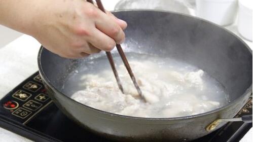 2.做过偶倒水烧开,把搅拌均匀的肉片一片一片的加入到锅中煮熟,然后加入苦笋煮开后,调入盐,味精,鸡精调味后起锅再撒上葱花就好了。