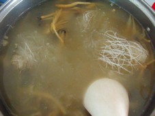 4 放入粉丝煮到八成熟(要是煮到喜欢的软度,那么一会吃的时候就会腻)。