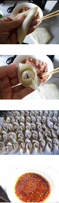 4、做锅烧水,水烧开后下入抄手煮好后捞出蘸酱料食用。
