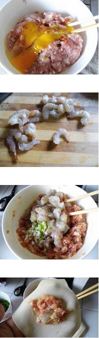 1、猪肉洗净垛成肉糜,加入鸡蛋与酱油、白糖、胡椒、盐、姜水、葱花、麻油、鸡精,拌匀;