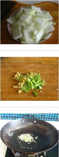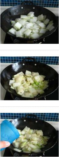 清炒冬瓜的材料:冬瓜400克,葱5克,姜3克,盐4克,清水30ml 清炒冬瓜的做法:1.冬瓜去皮去瓤洗净切片,葱姜分别切末。 2.坐热锅下油,先放入葱姜末炝锅后放入冬瓜片翻炒至冬瓜开始变软,加入清水和剩余的葱姜末,继续翻炒均匀烧两分钟即可出锅。