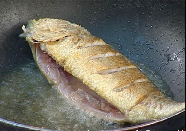 1 黄鱼洗净处理干净以后在两面打上花刀,撒上白胡椒粉,两面各放上半勺白酒,用手反复的揉搓,放在一边腌制十到二十分钟