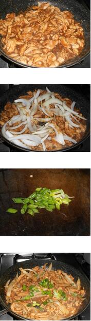 2.坐锅倒油烧热,把鸡肉放入炒至变色,倒入生抽,老抽,料酒和糖炒匀,略煮一下,放入洋葱炒至断生后撒上葱花炒匀即可。怎么做好吃
