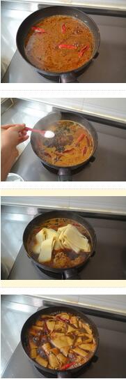 麻辣豆皮的材料:豆腐皮,生抽,老抽,花椒粉,辣椒粉,五香粉,糖,桂皮,八角,辣椒,花椒,盐,鸡精 麻辣豆皮的做法: 1.豆腐皮切成合适喜欢大小 2.热锅凉油爆香,三种混合粉,和其余的香料,加入生抽,老抽,糖,开水做成汁子,加盐和鸡精调味,倒入豆皮,小火煮上15分钟,泡在里面就好。