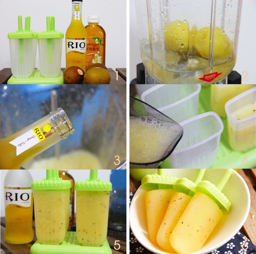 1. 准备冰棍模具,RIO香橙伏特加预调酒,奇异果和蜂蜜