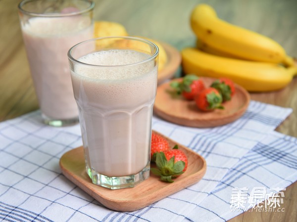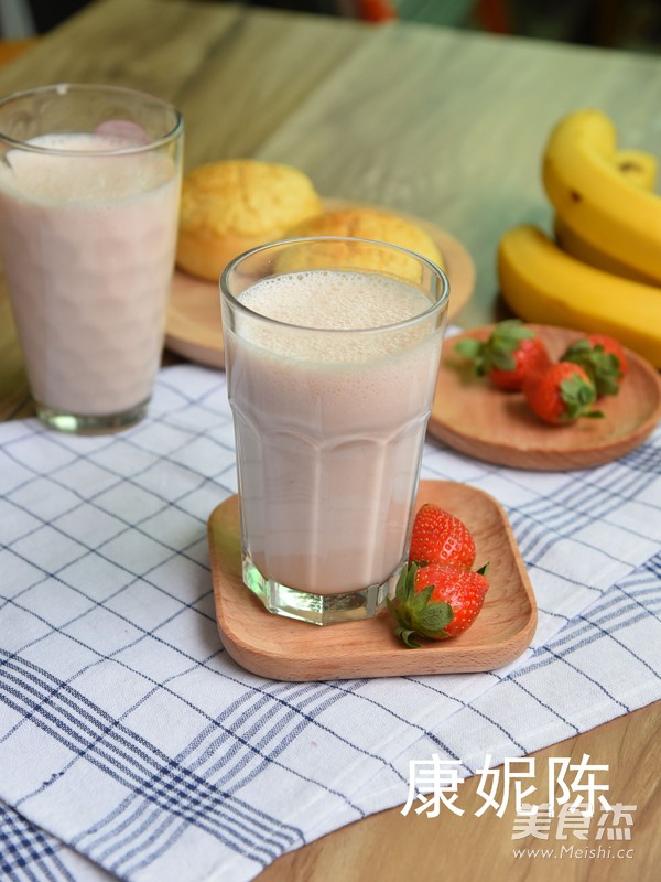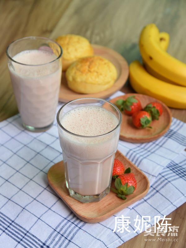 在超市看到可爱的草莓,又想起芬芳的思慕雪,用新鲜的草莓和超甜的香蕉,超甜香蕉是超市的卖点,不是市场那种香蕉,这种香蕉又香又甜,再加入自制的无糖酸奶,可以说这样的饮品健康低脂。放进料理机搅拌搅拌,粉嫩嫩的,萌萌的,一杯气味芳香的草莓香蕉奶昔,搭配小点心,活力十足,提神又愉悦心情,不管早餐或者下午茶,一杯自然味道的鲜果奶昔绝对一级棒!