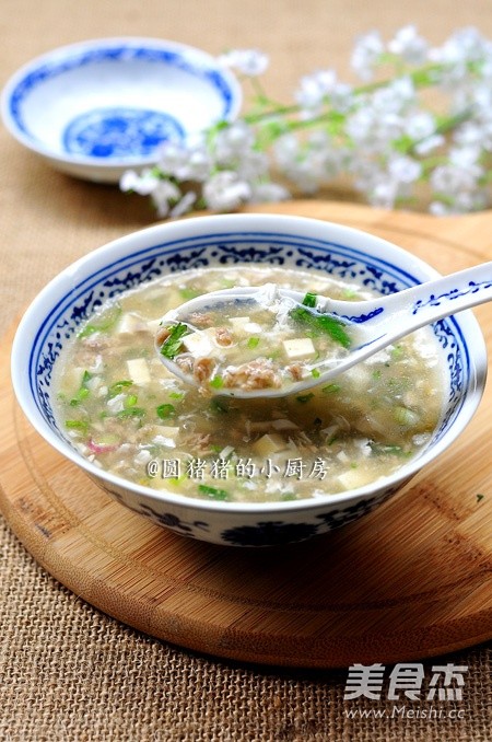 1、剁碎的牛肉如果直接放下锅煮就会成一坨煮不散,事先用开水在碗中烫过不但可以把牛肉搅散,而且可以去血水。 2、勾芡的时侯不要一次倒下去,最好分两次加,先加第一次觉得不够浓稠,再加第二次。 3、淋入蛋白的时侯,不要一碗全倒下去,而是转着圈慢慢的淋入碗内,并且火不要开的太大了,以免把蛋白煮老了。
