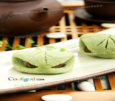 6、取20克求肥,加入白豆泥馅300克拌匀,加入少许抹茶粉和水,揉压拌匀即可;