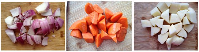 8、洋葱、胡萝卜和土豆洗净切块。