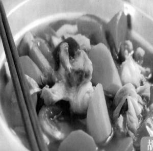牛骨炖萝卜汤原料: 牛骨(因为牛骨头一般较大较硬,在商场购买时请商家剁成小块) 牛骨炖萝卜汤步骤: 1,这就是牛骨啦,洗干净。 2,牛骨冷水下锅,中小火开炖。开后将浮到水面上的血沫撇出(牛骨的血沫较多,要多开一会儿,撇三、四次才能将血沫除尽) 3.把骨头汤倒入电砂锅,然后加小块姜片,一、二根葱(葱对半开)花椒数粒,将电砂锅调到煲汤档,然后滴入几滴醋. 4.就这样小火6个时间左右(注意水不能太也不能太多) 5.向汤中加入萝卜(注意:萝卜大块只能将舀些汤出来再加进去) 6.最后煮上20来分钟牛骨炖萝卜汤大功告成.