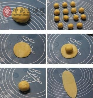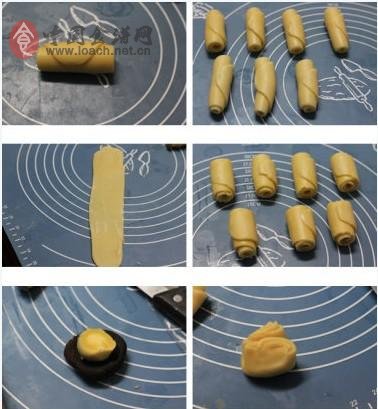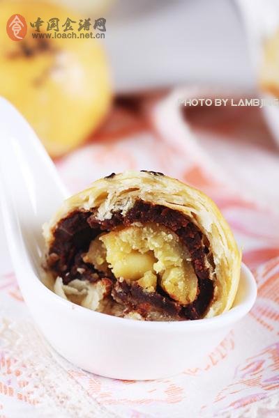 1、水油皮:面粉加糖加软化的黄油搓成颗粒状,再加水和成光滑的面团。水不要一次加入,可以边加边试面团的软硬程度,面和到比普通面团稍微软点就可以。