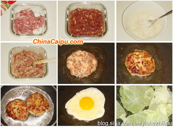 注意事项:制作有一定厚度的汉堡排,尽量使用先煎表面再加水焖煮的方法,充分利用水蒸气让肉类完全熟透,