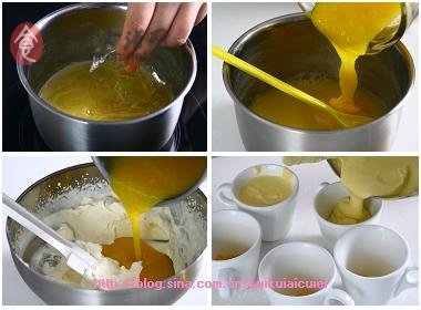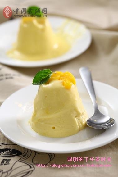 4.鲜奶油打发,与上料混合均匀倒入模具冷藏至凝固后食用。