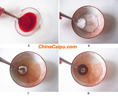 酸甜汁的材料:番茄酱 60克(4份),醯官醋60克(4份),白糖60克(4份),清水120克(8份)。(点击此处了解 吃番茄有六大禁忌 千万不可乱吃)