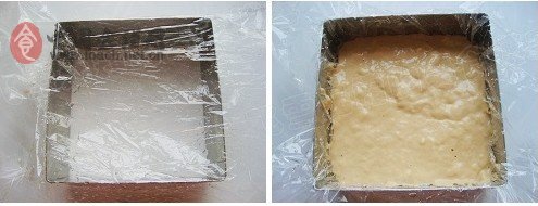 5、保鲜袋抹些油,放入模具中,