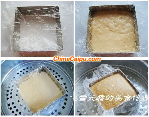 4、因为是放一个容器中蒸的,所以时间比馒头要长一点,以防不熟。
