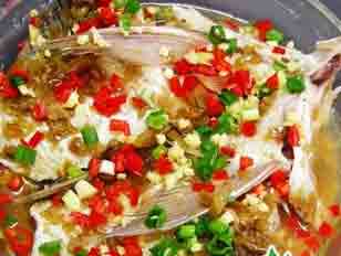 4. 水烧开,将鱼以大火蒸约10分钟左右,至筷子可插入鱼身;
