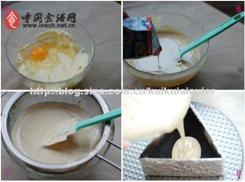 6.将混合好的芝士液再过一遍筛,芝士糊就完全无颗粒了。